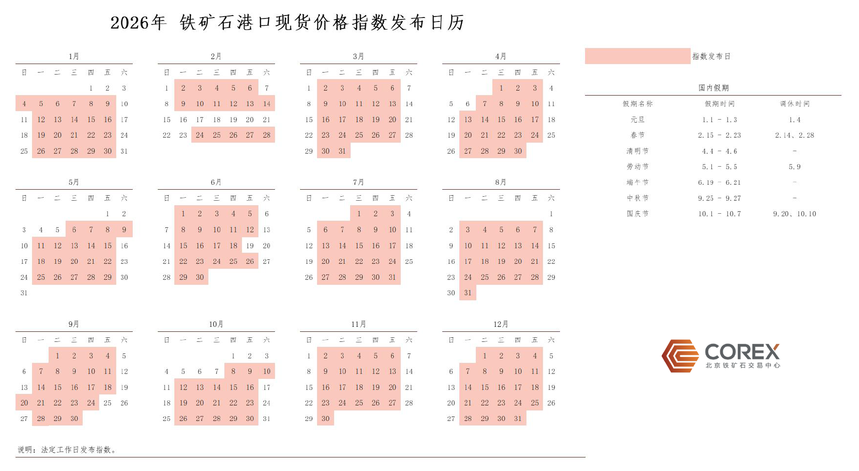2026年鐵礦石港口現(xiàn)貨價格指數(shù)發(fā)布日歷