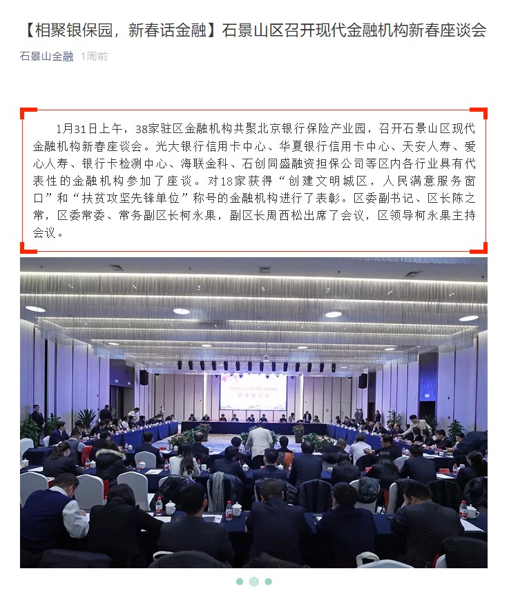 以下為石景山金融官方微信公眾號報道的詳細內容。