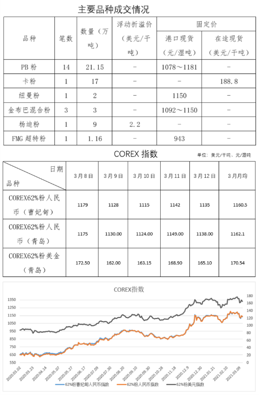 3月8日-3月12日成交34筆共74.11萬噸,其中在途2筆26萬噸,港口32筆48.11萬噸。