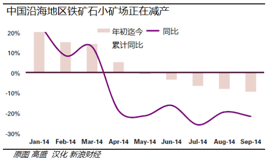 根據高盛預測,2015年市場需要吸收的過剩供給約為1.1億噸,大約為今年6000萬噸過剩供給的兩倍。市場吸收過剩供給的方式有兩種,一是關閉礦場,二是在中國港口累積庫存。